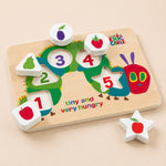 Deze speelse, opvallende houten vormenpuzzel met de beroemde rups van Eric Carle is perfect om kleintjes kennis te laten maken met vormen, kleuren en getallen, en helpt ook bij het ontwikkelen van de oog-handcoördinatie en fijne motoriek.